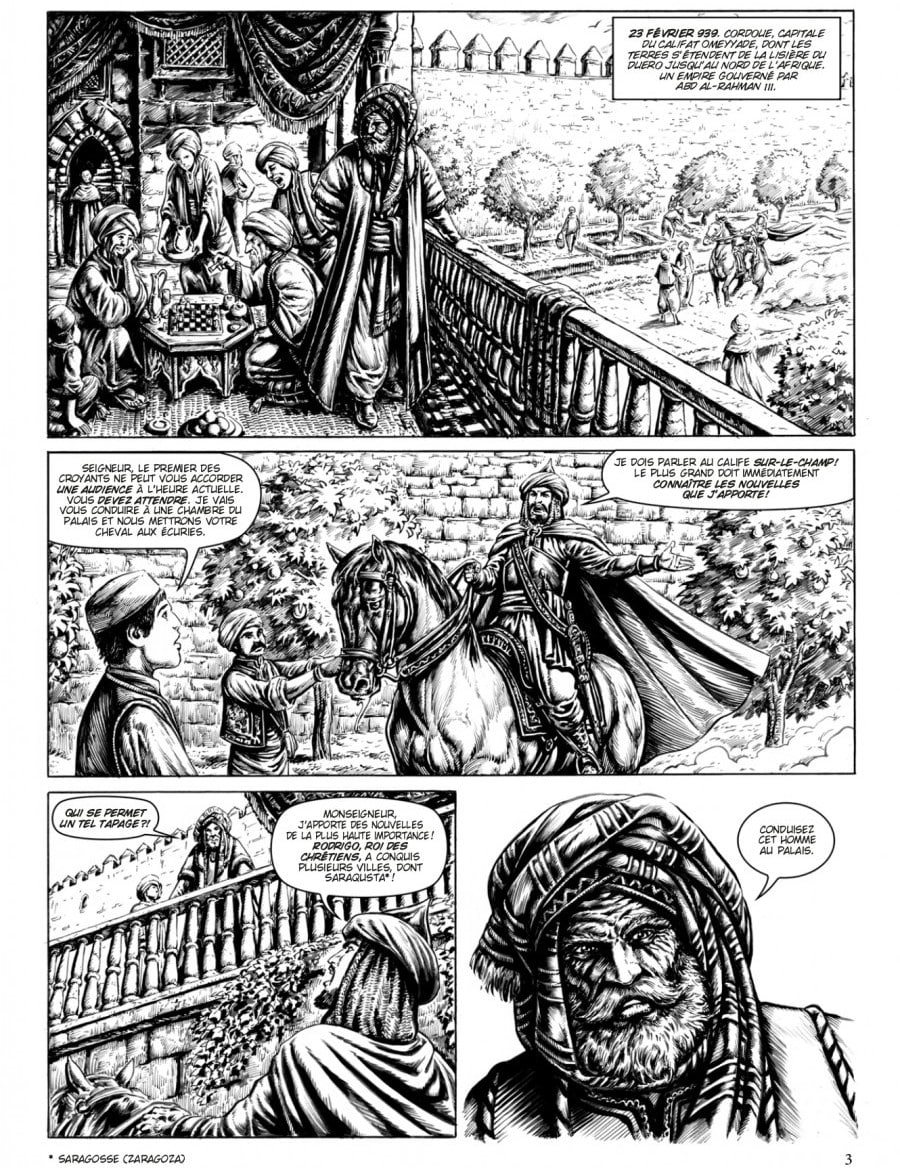 Dans cette nouvelle bande dessinée, Rafael Jimenez décrit La bataille de Simancas. Il faut savoir qu’en 939, le roi Ramiro II de León marcha sur Saragosse. Le gouverneur sarrasin de Saragosse se soumit alors au roi catholique et plaça toutes ses terres sous sa souveraineté. Pour anéantir définitivement le royaume de León, le calife omeyyade Abd al-Rahman III rassembla une immense armée, galvanisée par l’appel au djihad. Après avoir pillé les villes rencontrées en chemin, les contingents du califat livrèrent la bataille au nord-est de Simancas pendant plusieurs jours. Selon les chroniques arabes et chrétiennes, une éclipse solaire eut lieu quelques jours avant la bataille. Les chroniques chrétiennes ajoutent que saint Jacques apparut sur un cheval blanc, tout comme saint Millán. Les chrétiens mirent en déroute les troupes musulmanes. L’importance de cette première grande victoire réside moins dans les gains territoriaux des royaumes chrétiens que dans sa valeur symbolique.