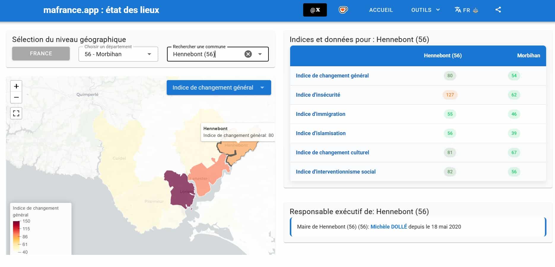 MaFrance.app zo ur lec’hienn internet hag un arload interesus ha pleustrek-tre evit ar Vretoned hag ar C’hallaoued. Geti e c’heller sellet pizh doc’h marc’had an tier en ur lakaat ‘ba jeu roadennoù zo : ar feur a repuidi e kumun-mañ-kumun, ar feur a zisurentez, e-men emañ ar c’hreizennoù evit ar repuidi, pet a voskeennoù a zo tro-dro, ar « kartchieroù » ?…