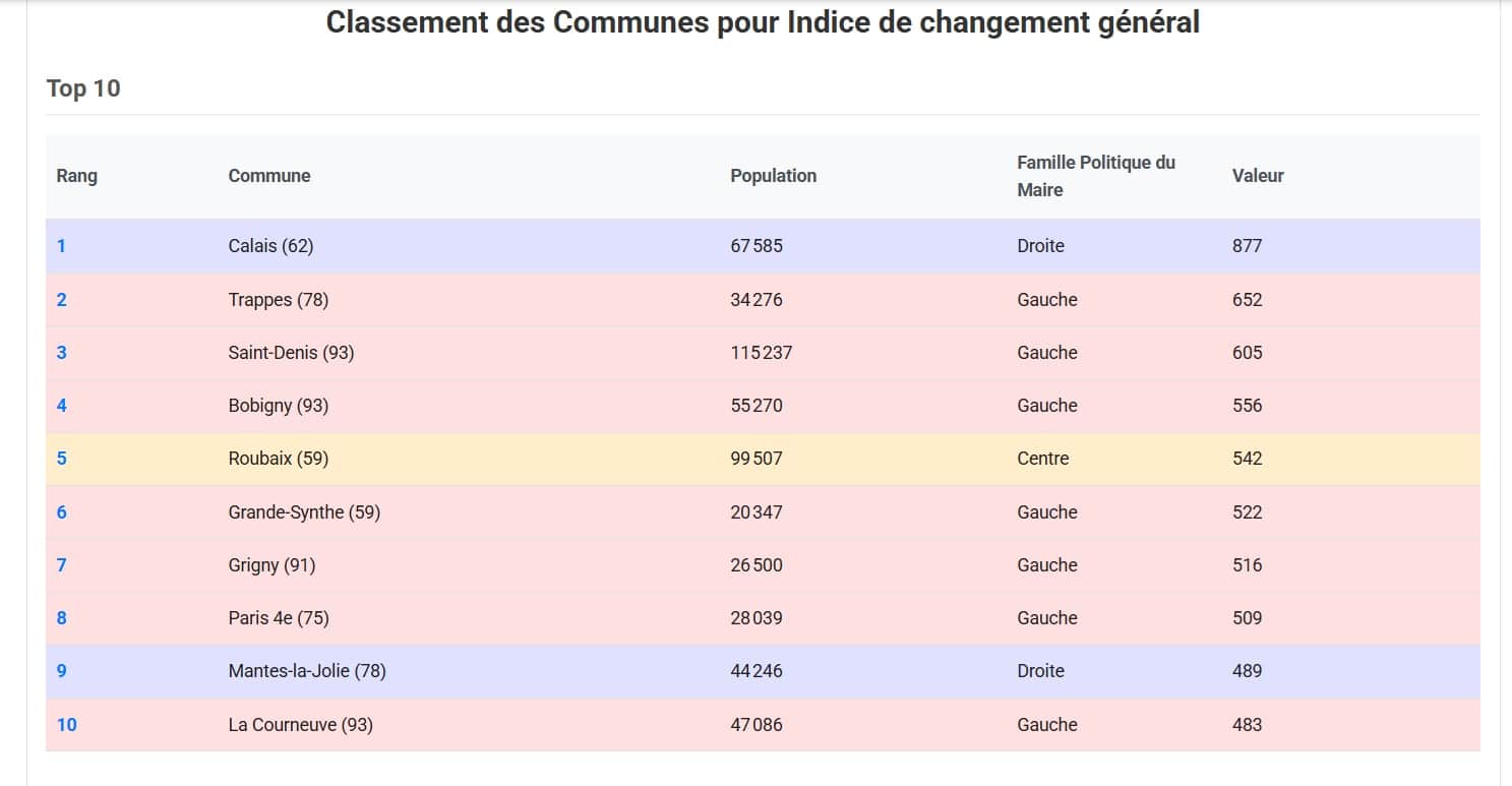 E Bro-Frañs a-bezh eo Calais a zo ar gêr e penn an Top 10, an hini get an FCH uhelañ (877 !). Goude-se e ta kêrioù a Vro Paris anat deoc’h.