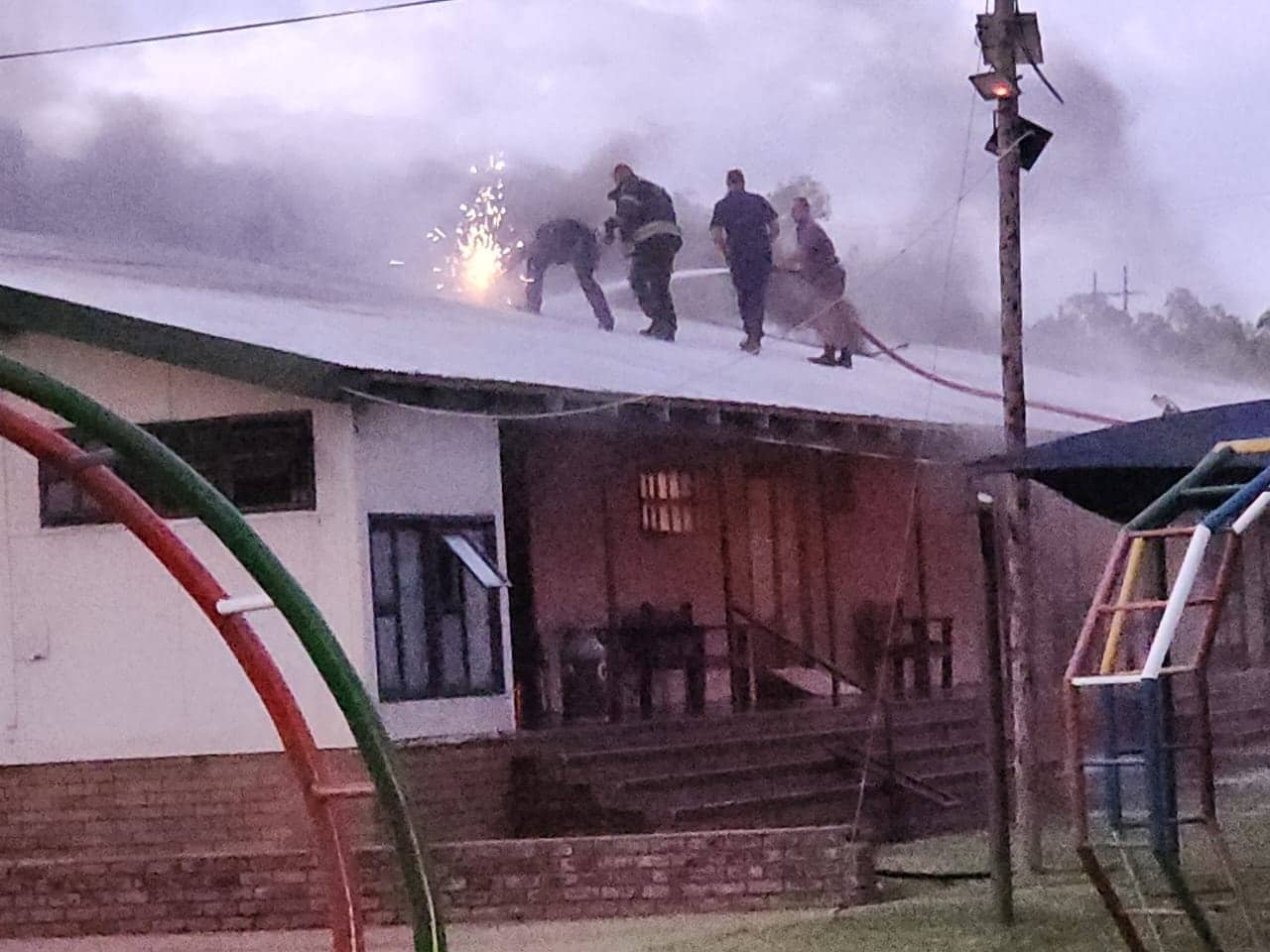 Les Services de sécurité d’Orania ont reçu l’appel signalant l’incendie à 19h19 et, à 19h31, les équipes étaient déjà sur place, en train d’arroser le bâtiment !