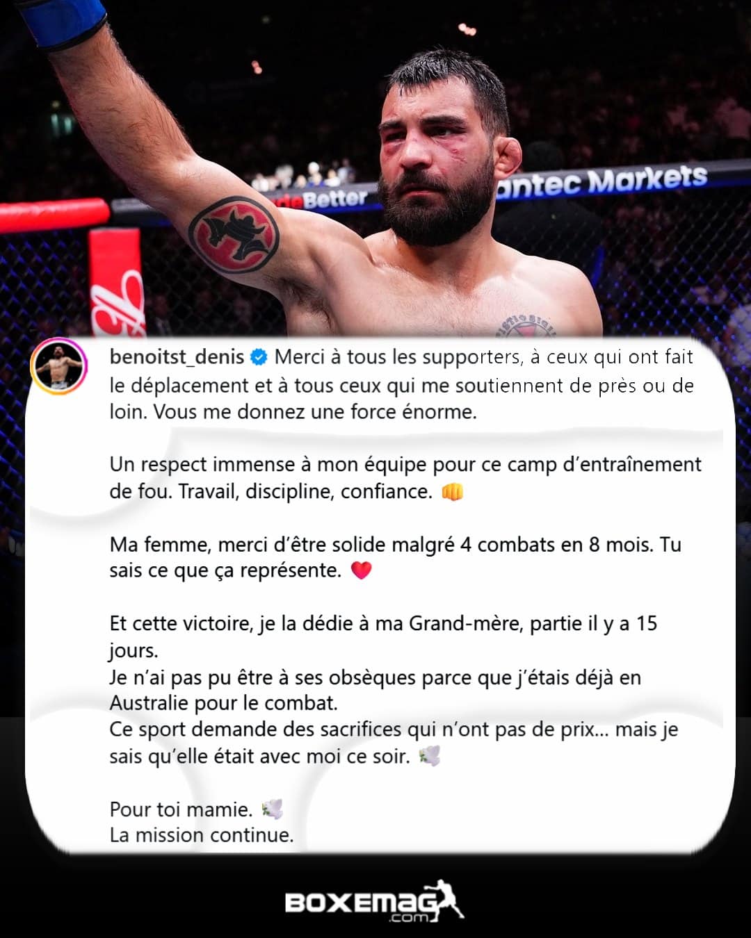 Pour BSD, désormais, les choses sont claires : s’il bat un Pimblett (qui reste sur une terrible et sanglante défaite face à Gaethje) ou un Tsarukyan avec la même facilité, il sera un sérieux prétendant au titre mondial. A l’heure actuelle, le détenteur de la ceinture est le Géorgien Ilia Topuria qui devrait prochainement affronter l’Américain Justin Gaethje.