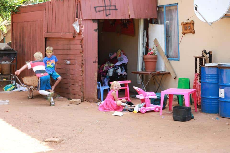 Ce quartier est presque entièrement blanc, ce qui remet en question le stéréotype sud-africain courant selon lequel les quartiers informels sont exclusivement noirs.