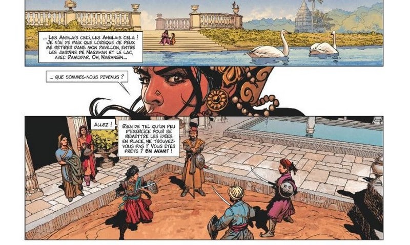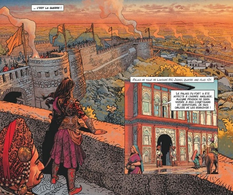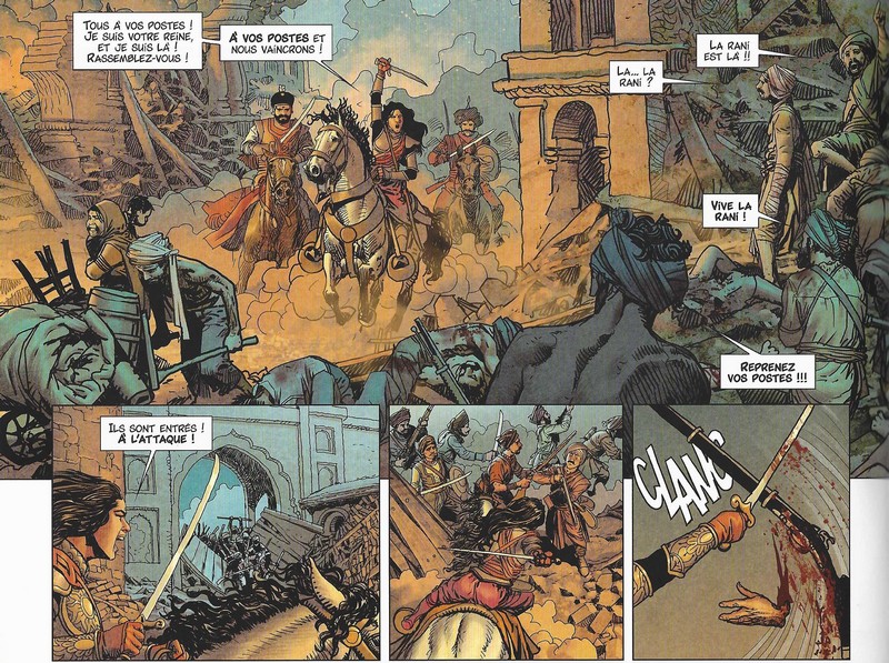 Dans les deux premiers tomes, Delalande et Mogavino nous montraient Rani grandir et tenter d’imposer ses vues face à l’occupant britannique. Dans le troisième et dernier tome, ils font monter la pression au fur et à mesure de la lecture pour nous entraîner dans cette rébellion dont elle finira par prendre le commandement, l’épée à la main.