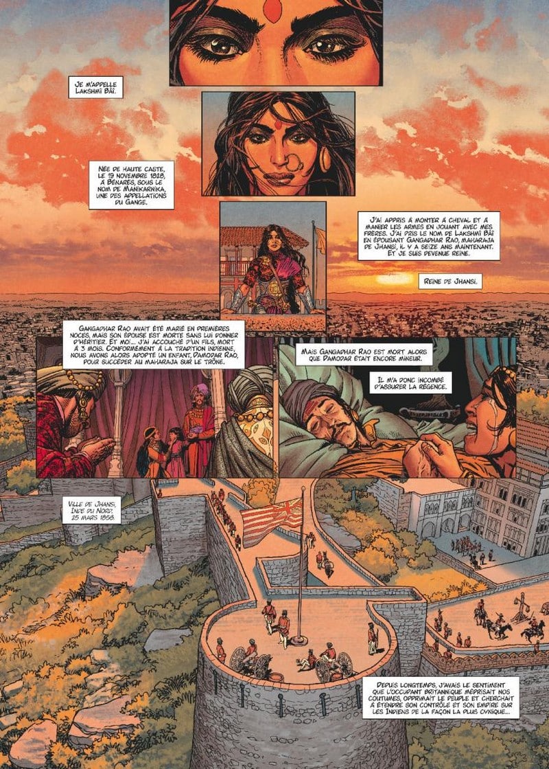 Dans le dernier album de la série consacrée à Lakshmi Bai, on découvre comment cette reine indienne, après avoir subi les manipulations politiques de l’Empire britannique, est devenue le symbole de la résistance armée.