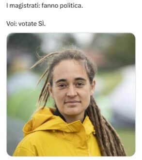 Photo d’illustration : Capture X Maria Teresa Melì » Les magistrats font de la politique, Vous, votez Oui » (au référendum sur la justice)