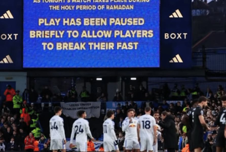 Samedi, lors du match de Premier League entre Leeds et Manchester City disputé à Elland Road, la rencontre a été interrompue à la 13e minute afin de permettre à des joueurs musulmans de rompre le jeûne du ramadan. Cette pause est autorisée depuis plusieurs saisons dans le championnat d’Angleterre lorsque l’horaire coïncide avec le coucher du soleil.