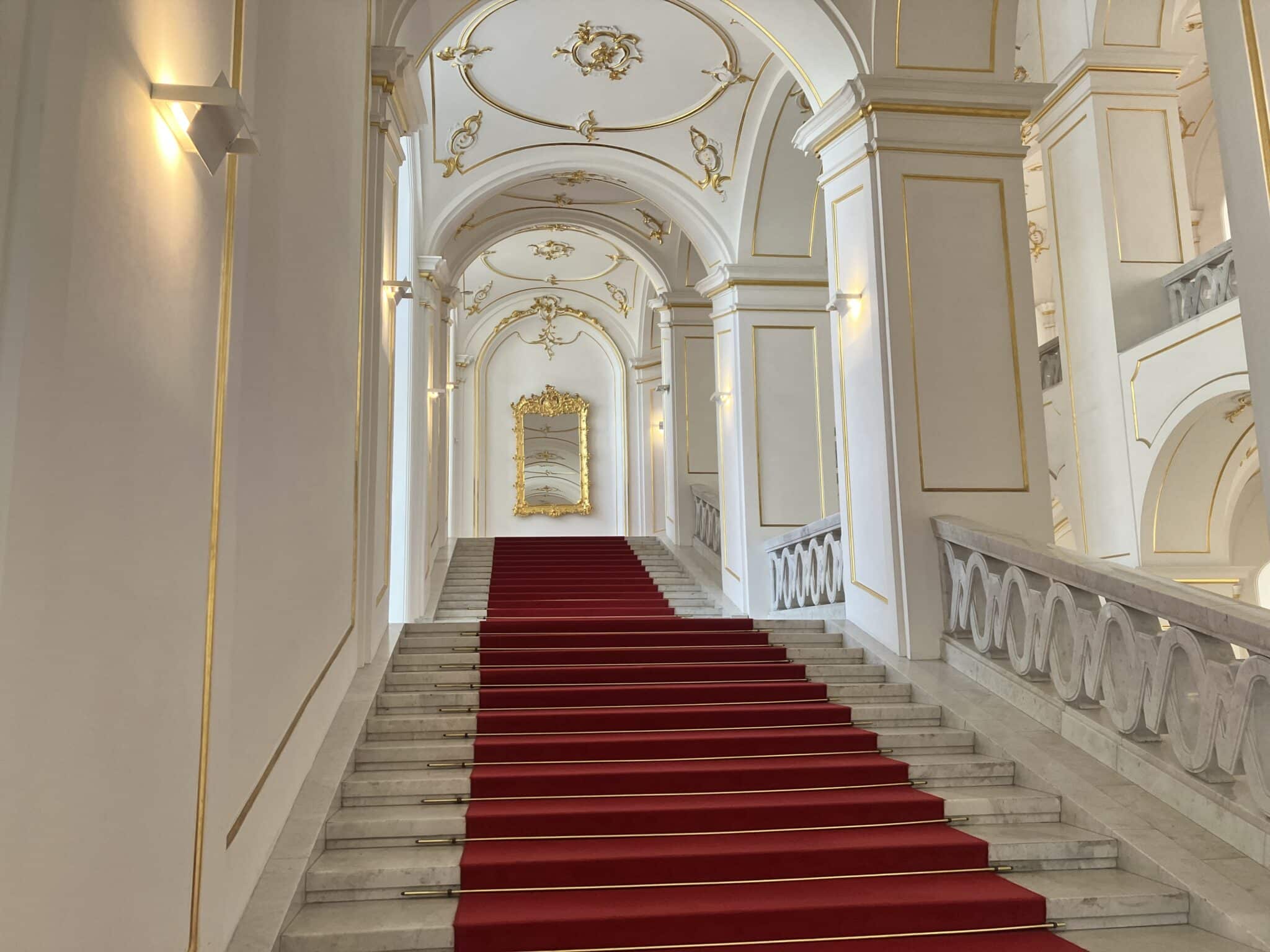 Devenue reine de Hongrie en 1740, Marie-Thérèse d’Autriche voulut faire de Pressburg un symbole d’unité entre la noblesse hongroise et la cour de Vienne. Entre 1761 et 1766, l’architecte Franz Anton Hillebrandt transforma la forteresse défensive en palais rococo, avec salons, escaliers monumentaux et jardins inspirés de Schönbrunn.