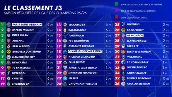 La troisième journée de la phase de ligue de la Ligue des champions 2025/26 (21 et 22 octobre) a offert un spectacle total. Dix-huit matchs, 67 buts inscrits, une moyenne